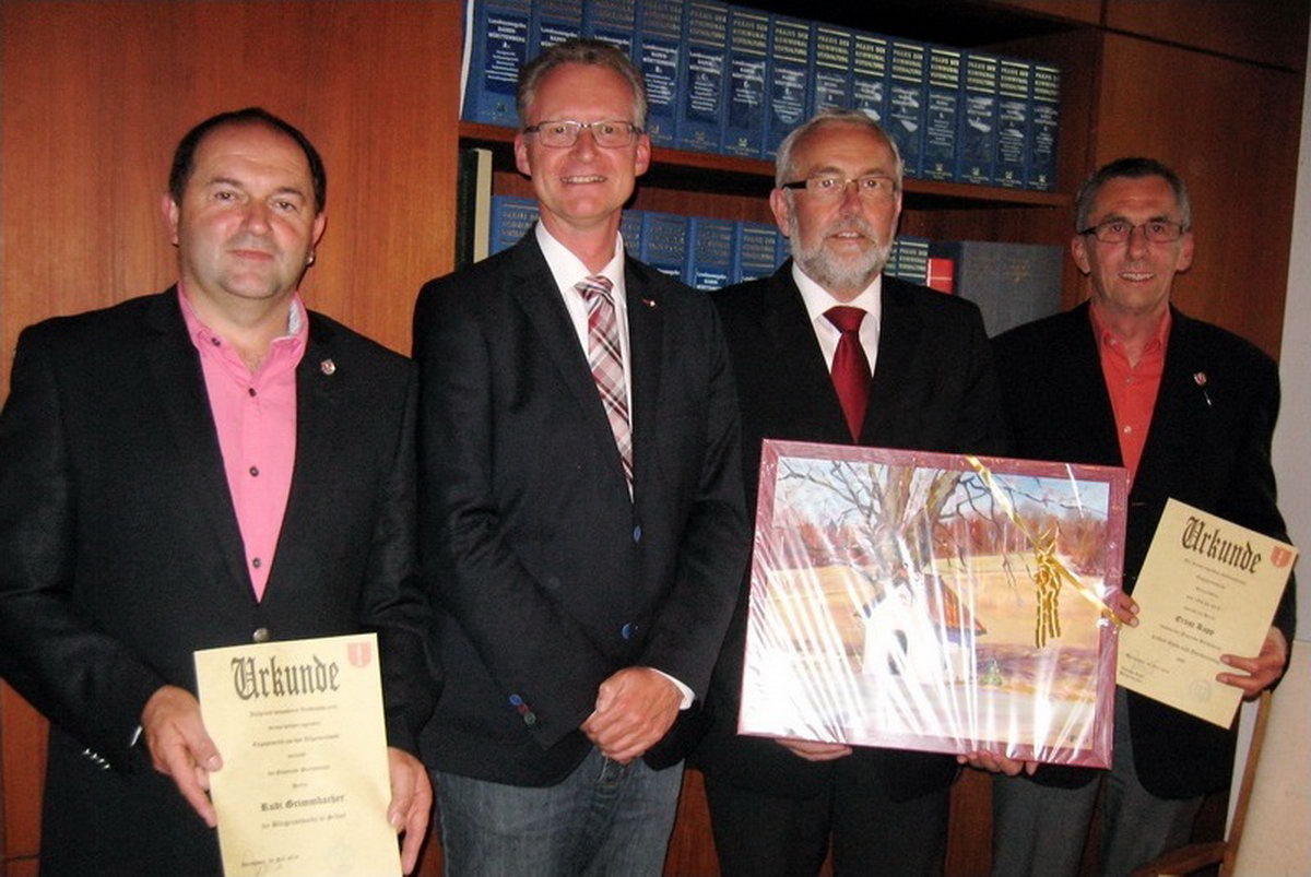 v.l. Gemeinderat Rudolf Grimmbacher, Bürgermeister Thomas Kuhn, Bruno Bieser und Ernst Kopp